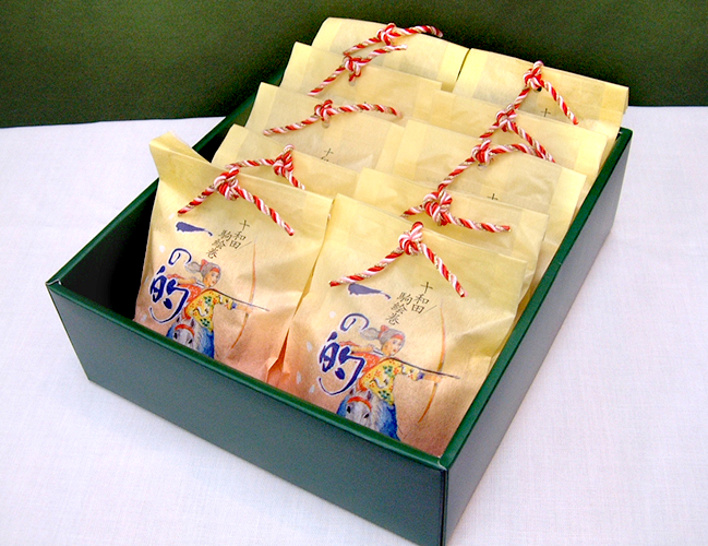 「十和田駒絵巻 一の的」は、”お菓子のいろどり花咲庵”の開店5周年を記念して、2006年2月から発売しております。