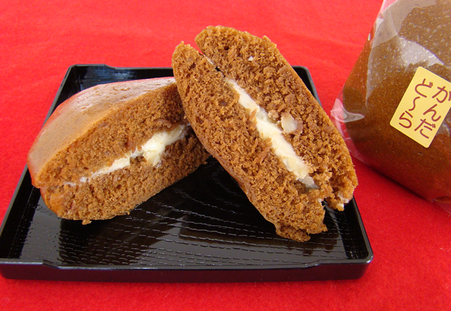 「かんだ・ど〜ら」の名前の由来ですが、まさにその通りですね。「もっちもち!」の「ふわっふわ!」の食感を噛んでみたら「どら焼き」だった?! とか、この食感を噛んでみたらどーだい? みたいな語呂で、「ハニカムダ」に続く外国語風な感じでインドのガンダーラっぽく、「かんだ・ど〜ら」になりました(笑)
