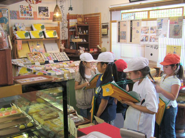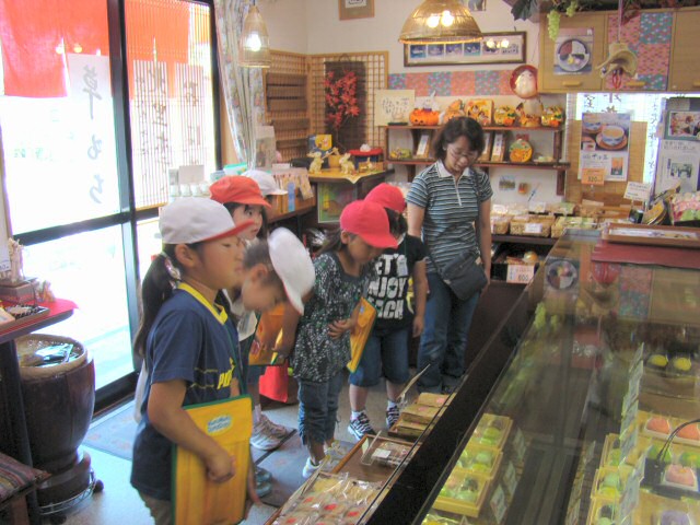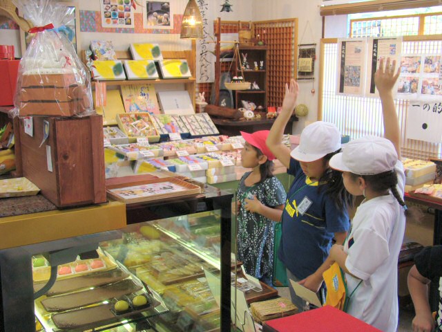 お店に入ってきた子供たちは「おはようございます!よろしくお願いします!」とお行儀よく元気にあいさつしました。まずはお菓子売り場のところで、いろいろと質問しました。