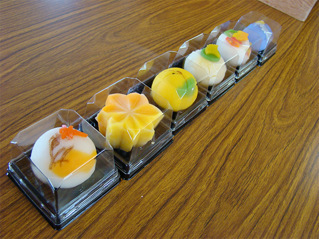 練り切りの生菓子は、中が何層かに重なっていて色彩を楽しむものなので、食べるときは、黒文字や楊枝などを使って、四半分などに切るのがコツというお話は、興味深かったようです。